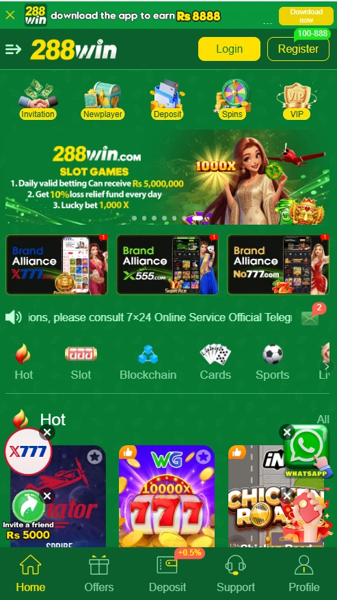 288 Win Game you can easily download the app and create your account in the platform. When you open the game the mobile game gives you a welcome bonus. Along with this, the app provides you with a spin wheel and daily bonuses. When you open the platform you find many games available inside the mobile game. You can enjoy these games place bets in the mobile game and get a chance to win more rewards. Some games included in the app are Aviators, Ludo, Card Game and Slots. You can play all these games in the platform.